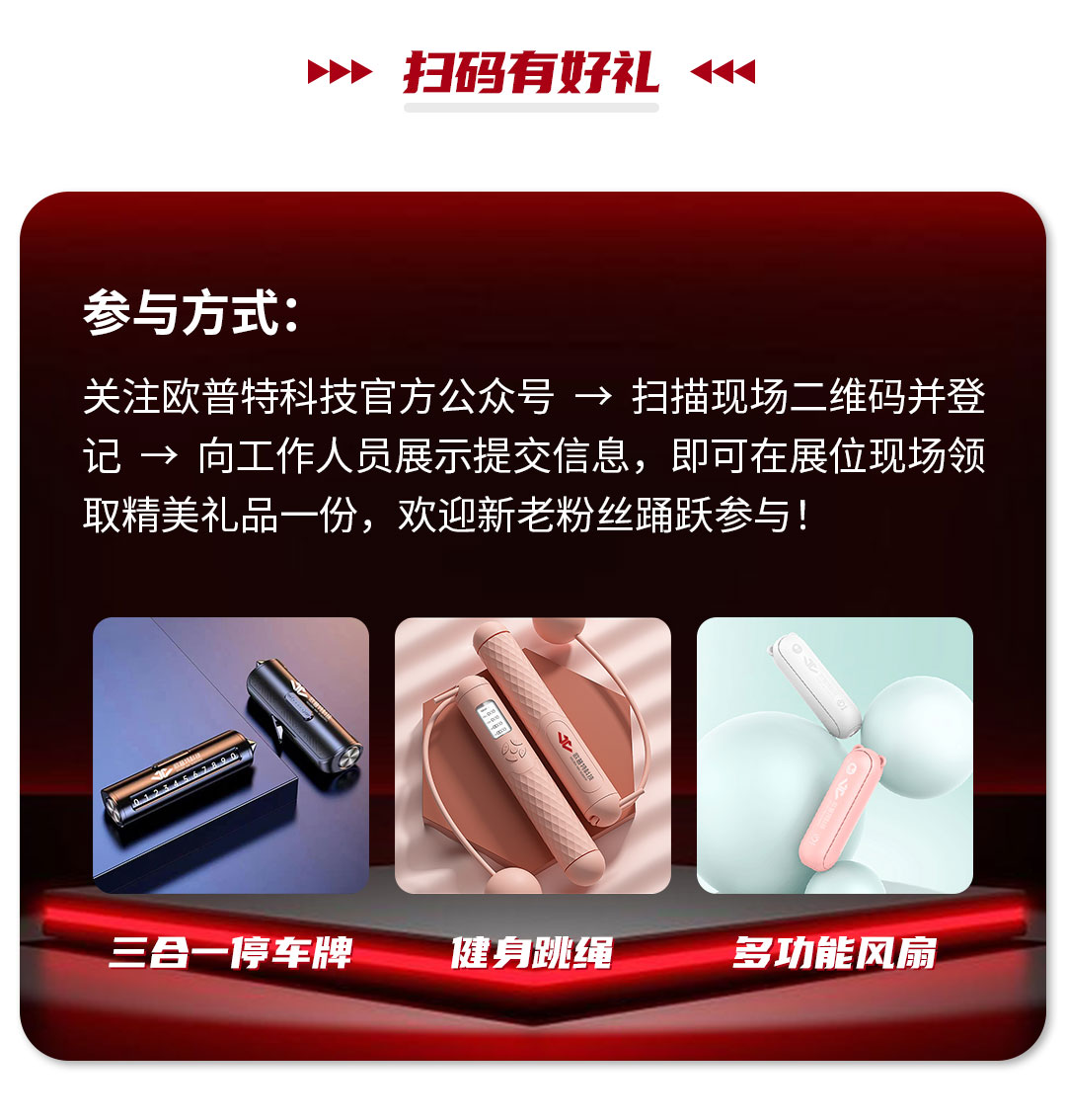 另外,在展会现场我们还安排了丰富又实用的小礼品,您只需要扫码登记并关注我们后即可领取。后续您还可以通过我们的官方公众号及时获取我司最新的产品信息与相关资讯。