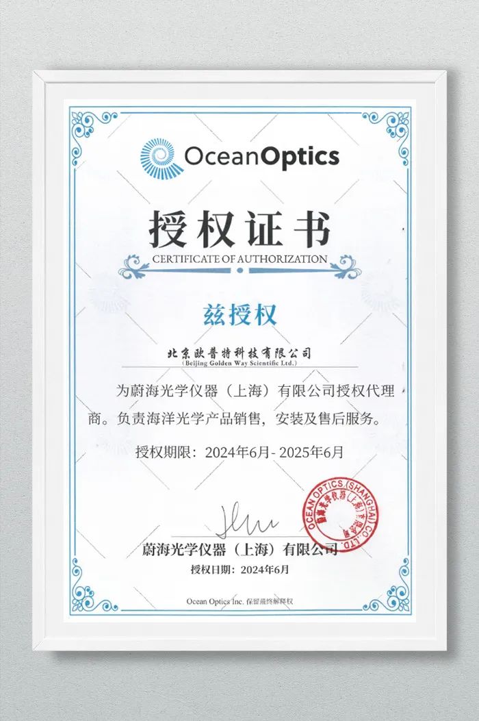 7月29日,欧普特科技与蔚海光学仪器(上海)有限公司(简称“海洋光学”)在北京达成战略合作,并签订了海洋光谱仪REV系列产品授权书,双方将依托各自在光学领域的技术及市场积累,资源共享、优势互补,共同推动海洋光谱仪REV系列在各领域的产品应用。